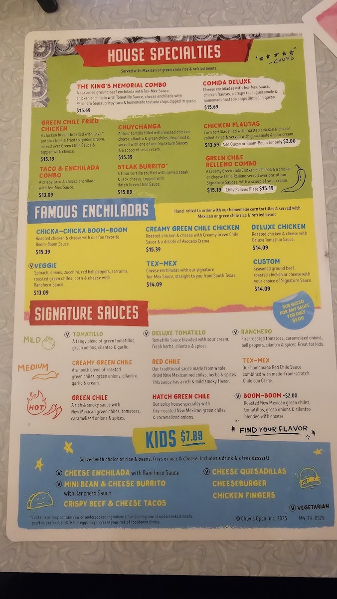 Main attractions include the sizzling Fajitas—available in beef, chicken, or combo—and the indulgent The King's Memorial Combo, featuring a medley of enchiladas and tacos. Don't forget to try their signature Chuychanga, a deep-fried tortilla packed with roasted chicken and cheese. Add to this the warm, inviting ambiance and superb service, and you have a culinary experience that beckons you to return.